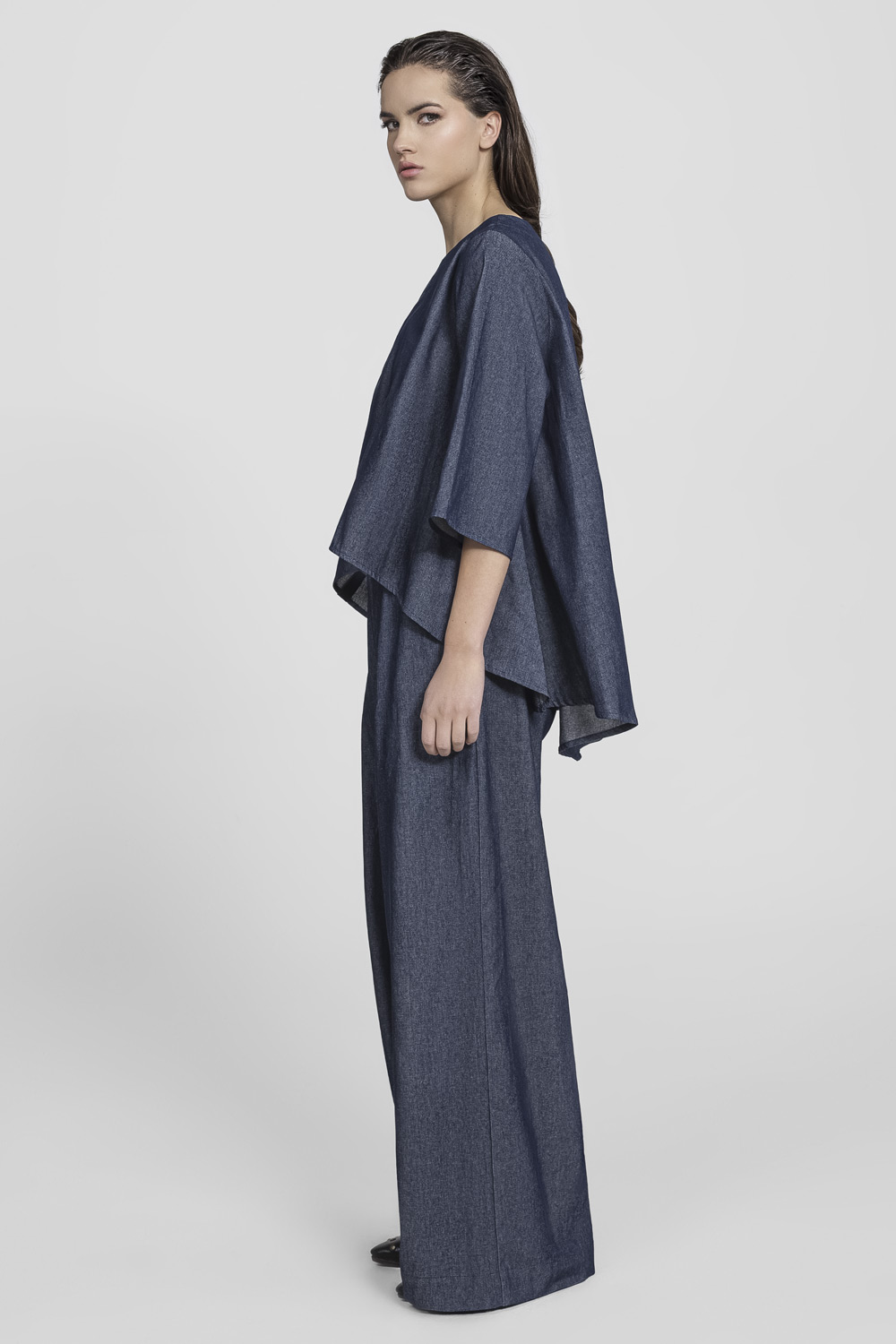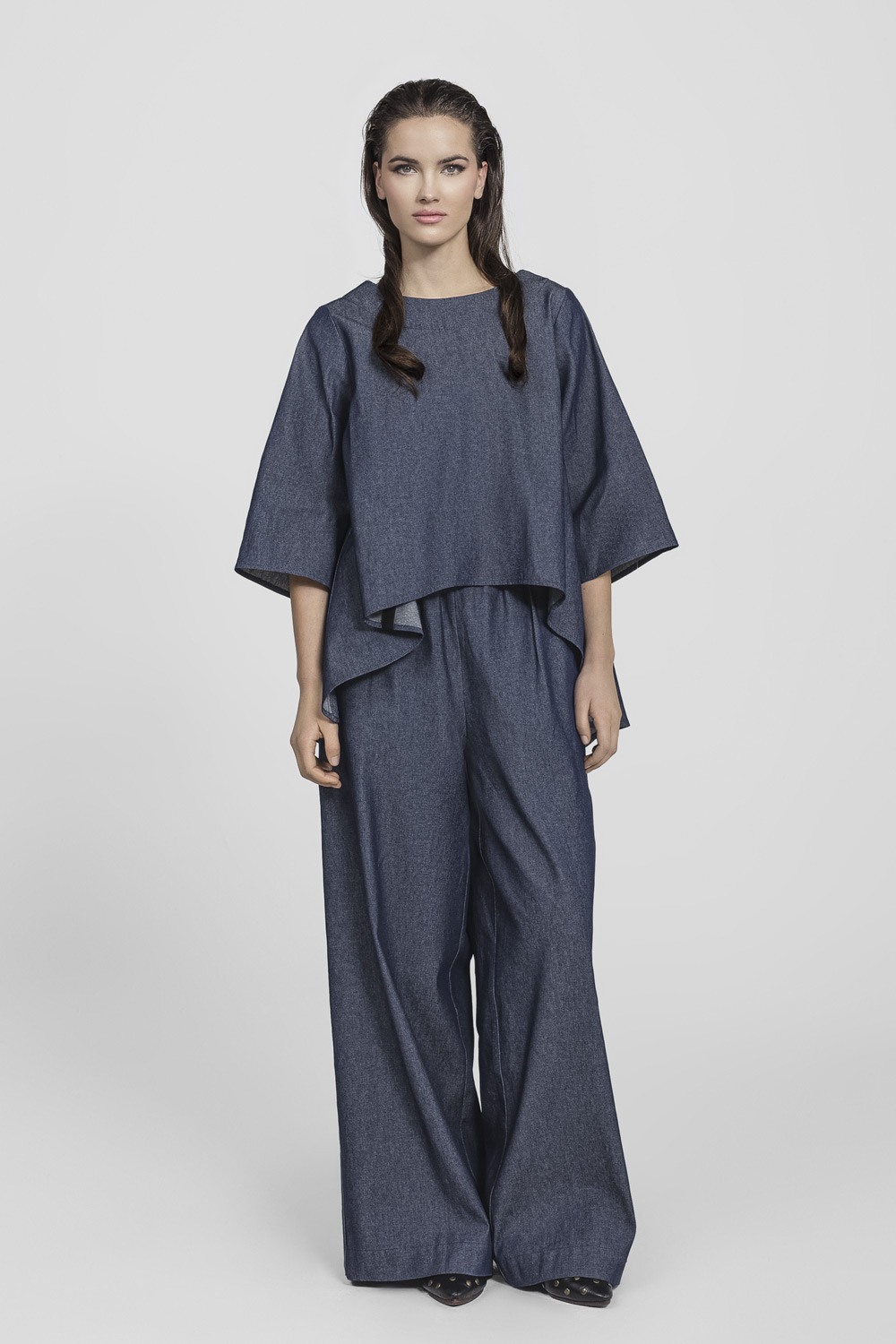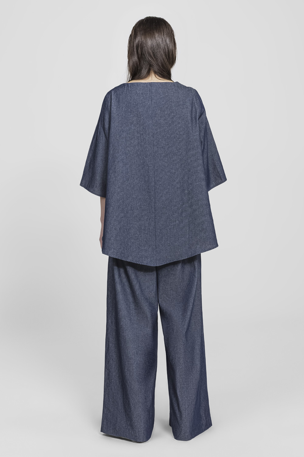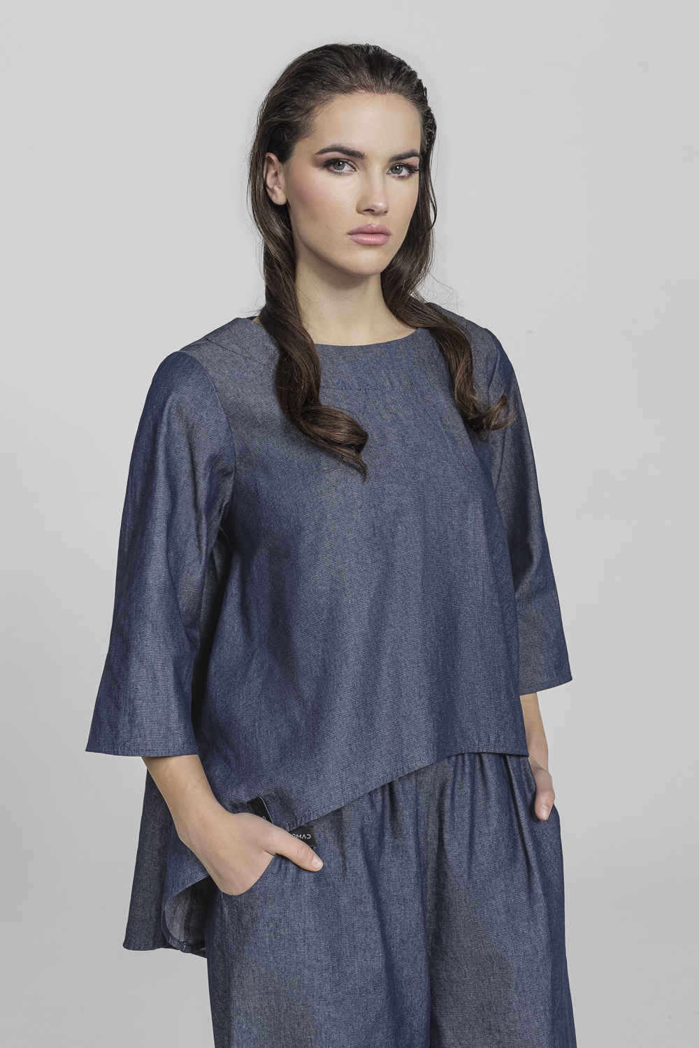 This interesting top is made od 100% cotton denim material and comes with 3/4 sleeves.
