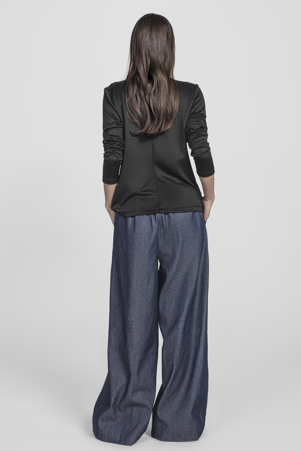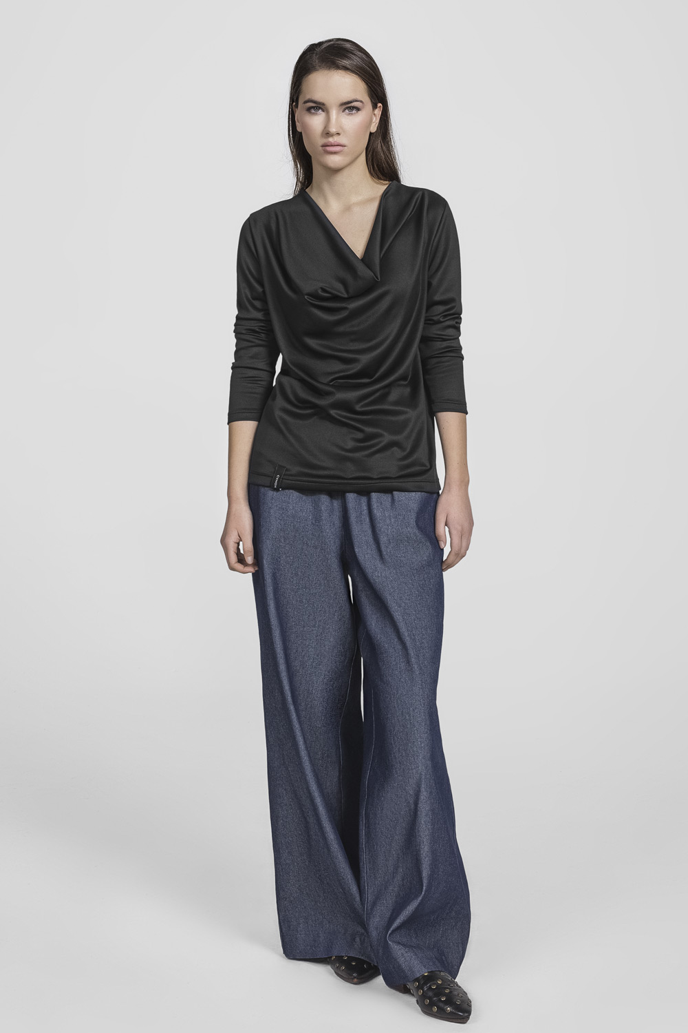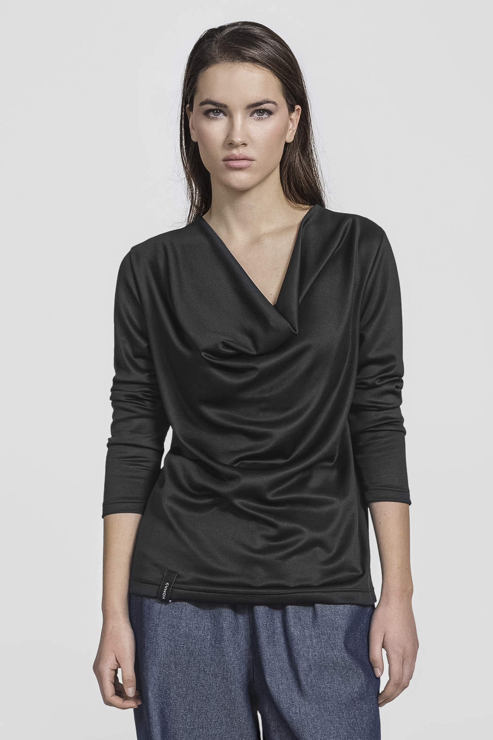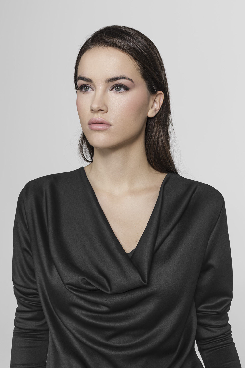 An elegant top featuring a waterfall neckline, made from high-quality, strechy fabric that feels soft to touch. Its refined drape enhances the feminine silhouette, creating a sophisticated and timeless look suitable for both elegant and everyday styling.